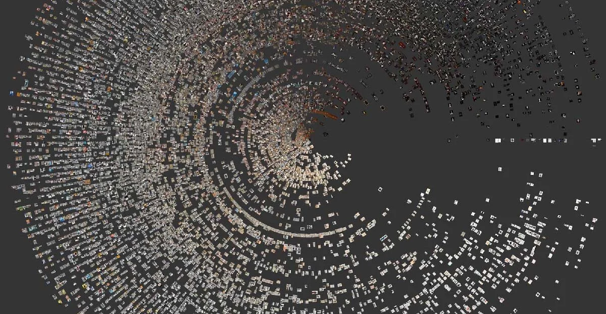 “Phototrails” © Lev Manovich, Instagram Cities - 50,000 Instagram photos from Bangkok, organized by brightness mean (radius) and hue median (perimeter). Co-authors: Nadav Hochman and Jay Chow. http://phototrails.info/instagram-cities/